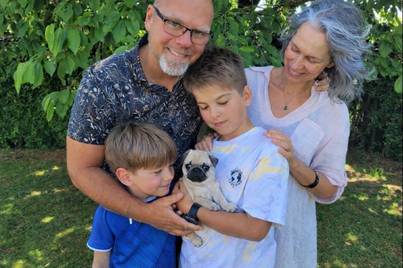 Vi hedder Anja og Magnus og sammen med vores to drenge Zander og Lauritz, samt vores nye mops Daisy, er vi de heldige indehavere af vores lille familiefirma "Hellerup Dog Walk".